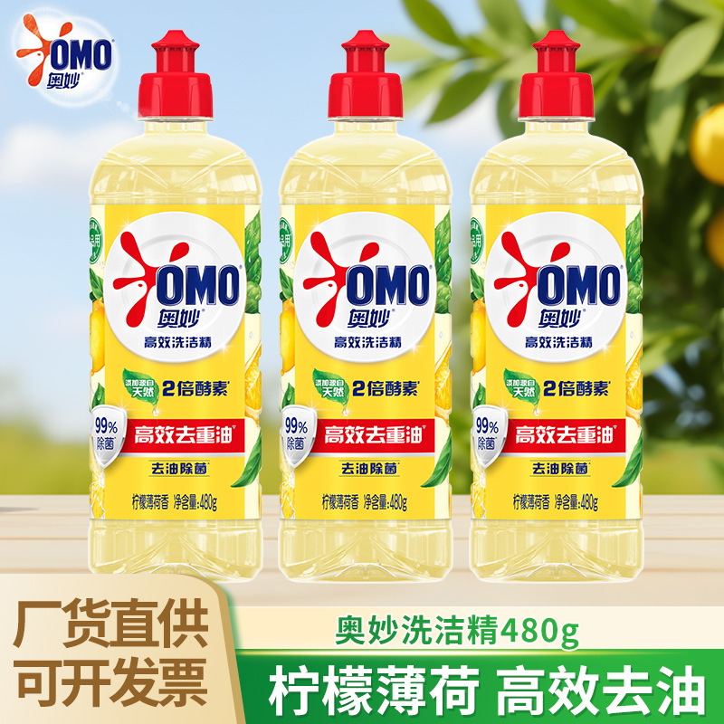 奥妙480g柠檬去油高效洗洁精酵素果蔬餐具净去农残洗碗温和不伤手