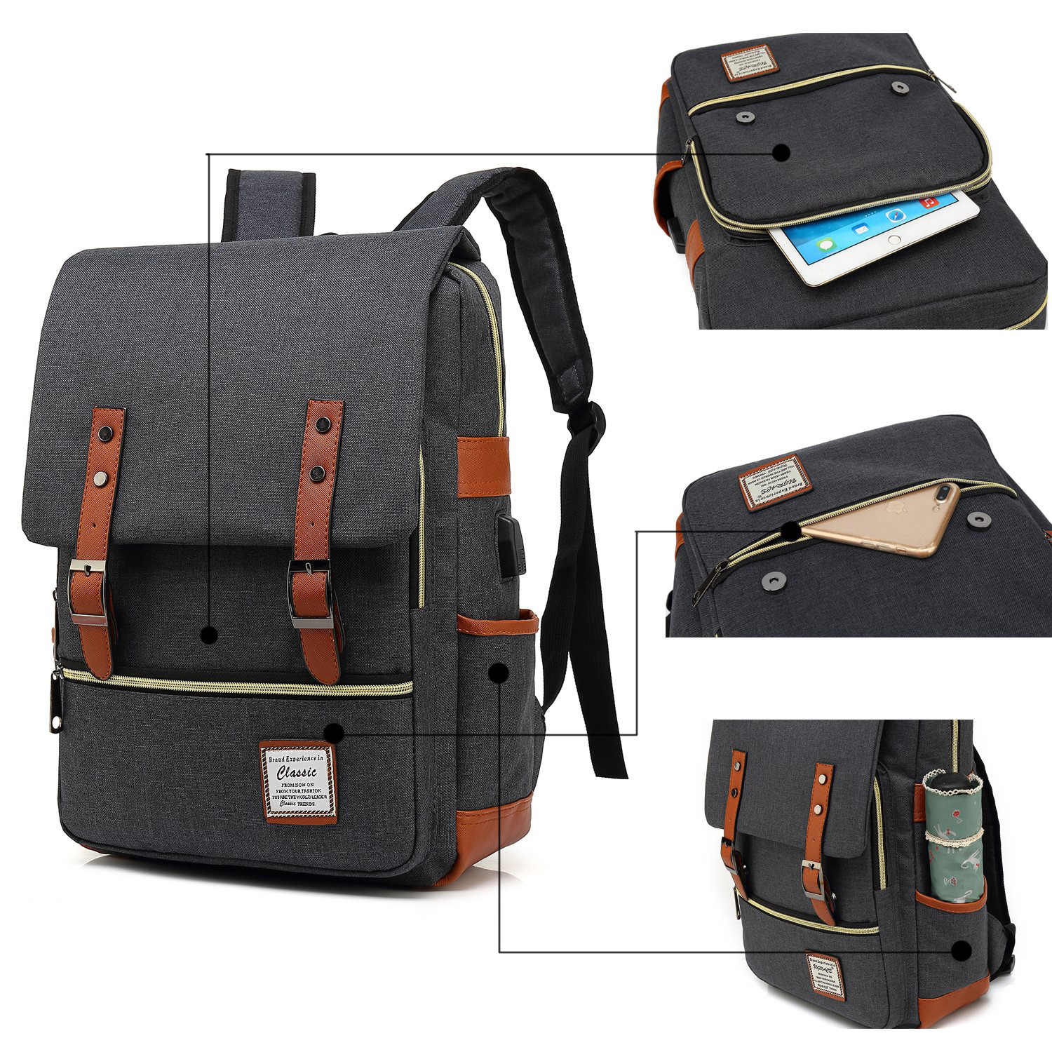 クロスボーダー新型パソコンリュックサック韓国版学生カバンオックスフォード布男性リュックサックレトロ旅行カバンusb付き