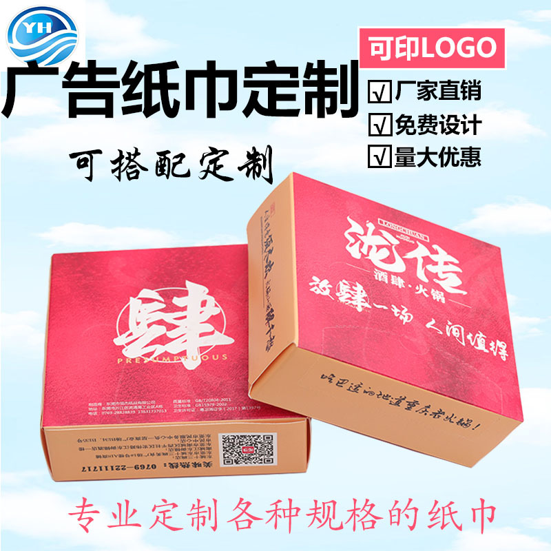 箱入りペーパータオル、定智レストラン用ナプキン、広告用ペーパータオル、正方形の箱入りペーパータオル、ロゴ印刷可能、テーブル用