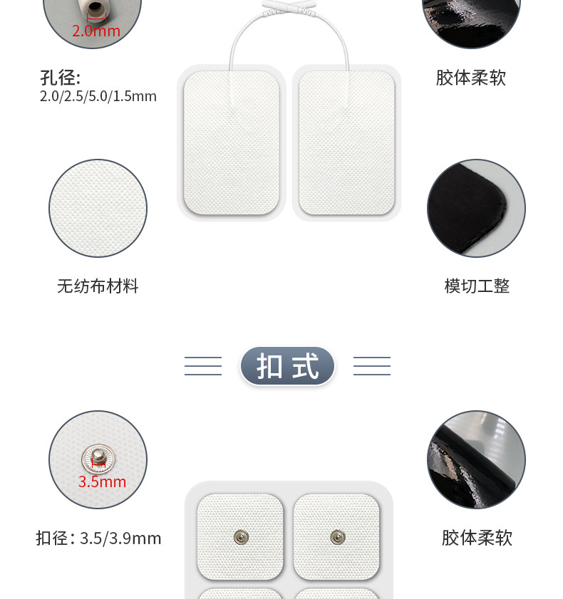 理学療法用電極シート 4*4cm 2.0/2.5/5.0ピン ジョイントタイプ 中低周波パッチ 自己粘着ゲルパッチ