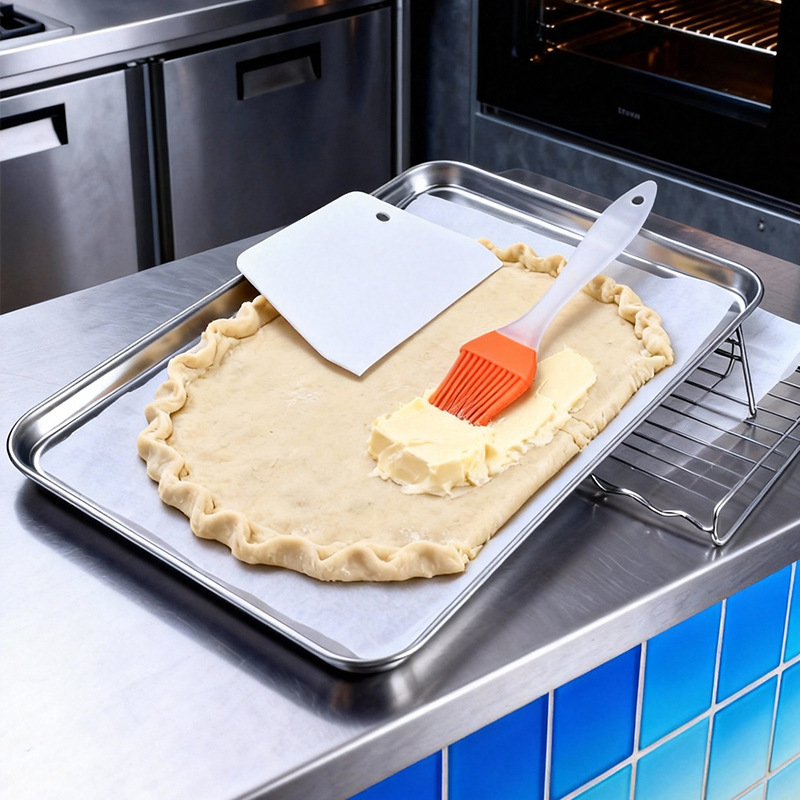 外贸日式肠粉蒸盘不锈钢凉皮盘卷边防刮手多用方盘烘焙托盘平底盘