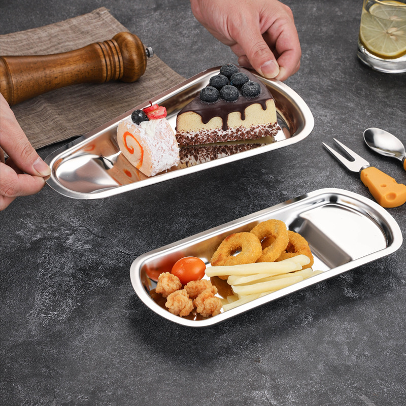 ステンレスの腸の粉の皿の平の角の皿の冷たい皮の長方形の蒸し皿の日本料理のトレーの焼き皿のアマゾンは国境を越えます。