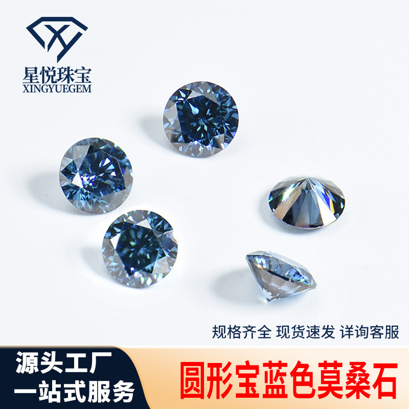 梧州厂家培育宝石彩色莫桑石宝蓝色裸石现货批发人造配石圆形