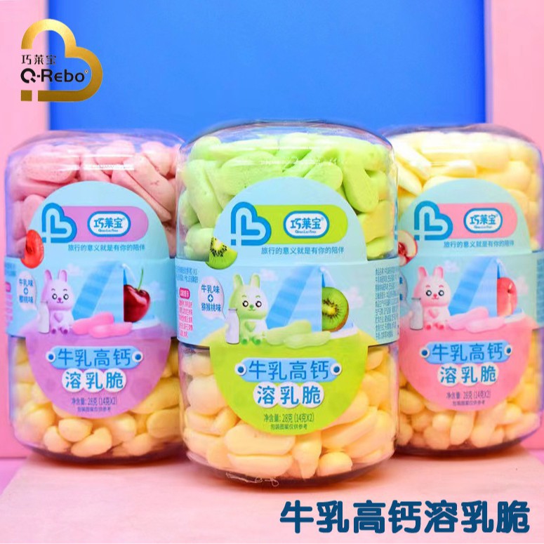 2025 年 5 月 Qiaolibao ミルク高カルシウム溶解ミルククリスプ 28 グラム溶解豆ピーナッツ形状二層溶解豆スナック