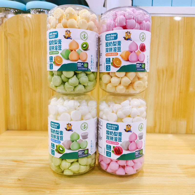 2025年9月 ベラベイビー ヨーグルト梨ペースト ダブルミックス ソリュブルビーンズ 20g 二層ソリュブルビーンズ スナック ツートンカラー ソリュブルビーンズ