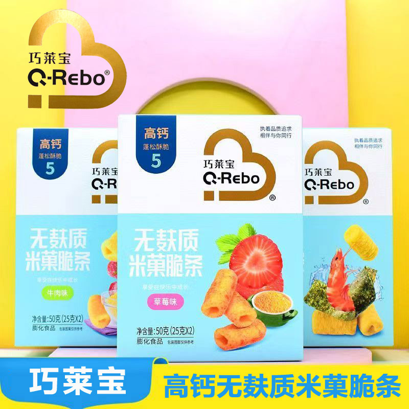 2026年1月 巧莱宝无麸质米菓脆条50g泡芙吸口水饼干牛肉草莓味