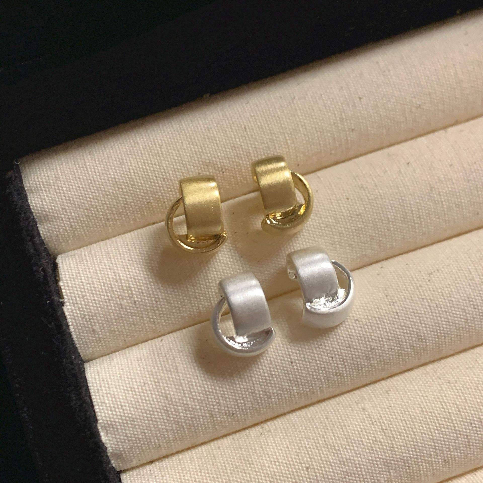 フランスの高級感の極めてシンプルな幾何学芸術に合わせて、小さなラメのイヤリングを飾っています。