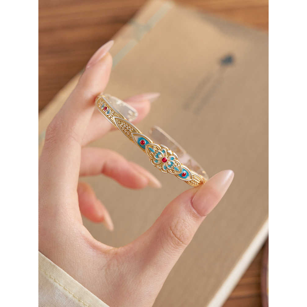 [西風翠] 新しい中国風の宮殿蓮ブレスレット女性用ゴールデンエナメルライト高級多用途気質オープンブレスレット
