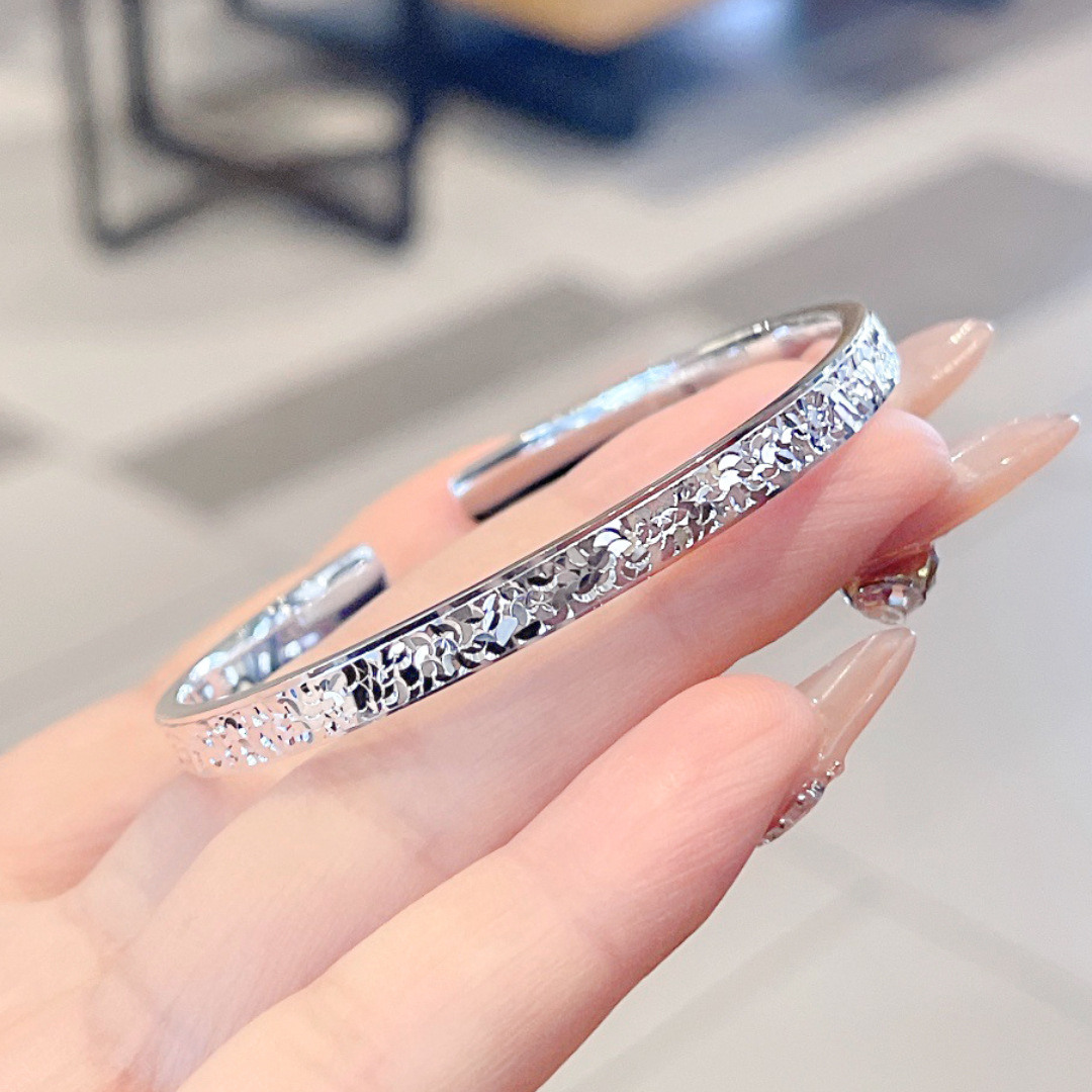 璀璨之光!闪耀纹理冰碎碎开口手镯尽显奢华精致之选绽放闪耀魅力