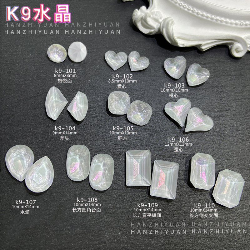 K9水晶ドリルネイルモカ白水晶蛍光ドリル大歪心肥方軽豪華ガラス異形尖底ドリルアクセサリー