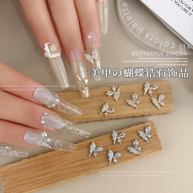 新しいネイルジルコンのアクセサリーネットの赤いドリルの蝶の銅はジルコニウムの金の銀色の軽い豪華な爪のドリルを入れて甲の装飾を身につけます。