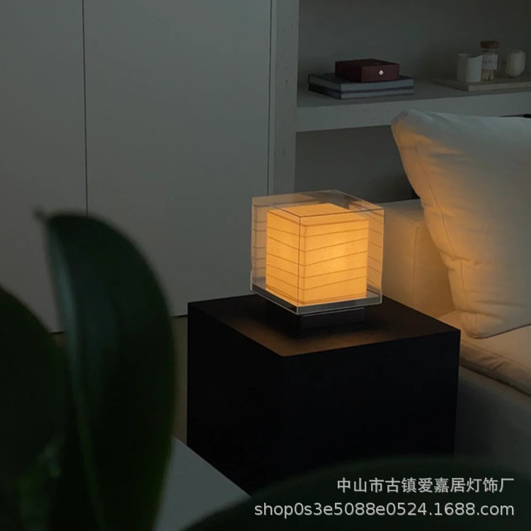中古デザイナー ANdAZ Ji Yutang スクエアライスペーパーテーブルランプ廊下通路壁ランプ充電式ホテル雰囲気ランプ