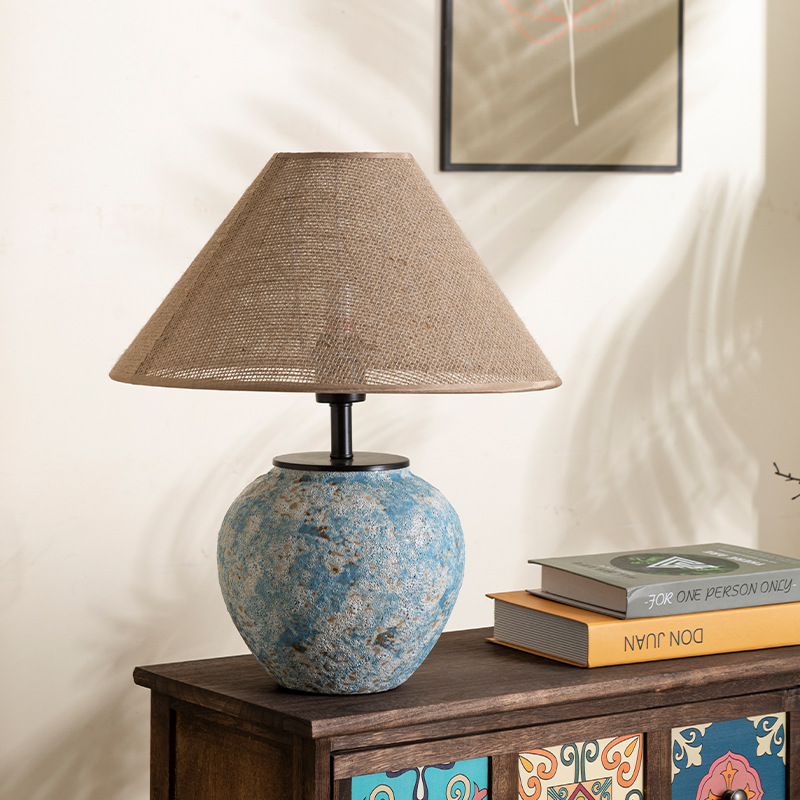 侘び寂び風土陶台灯 中国風粗陶器 リビングルーム ホテル ベッドサイドランプ LEDランプ