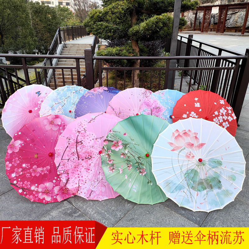 工芸傘中実木棒ダンス傘チャイナドレス絹布傘演出傘装飾吊り下げ花布傘油紙漢服傘