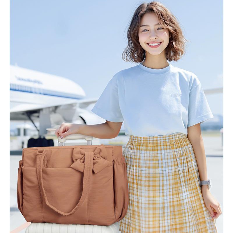 跨境新款短途旅行包行李袋蝴蝶结棉服包新款收纳便捷大容量可定制