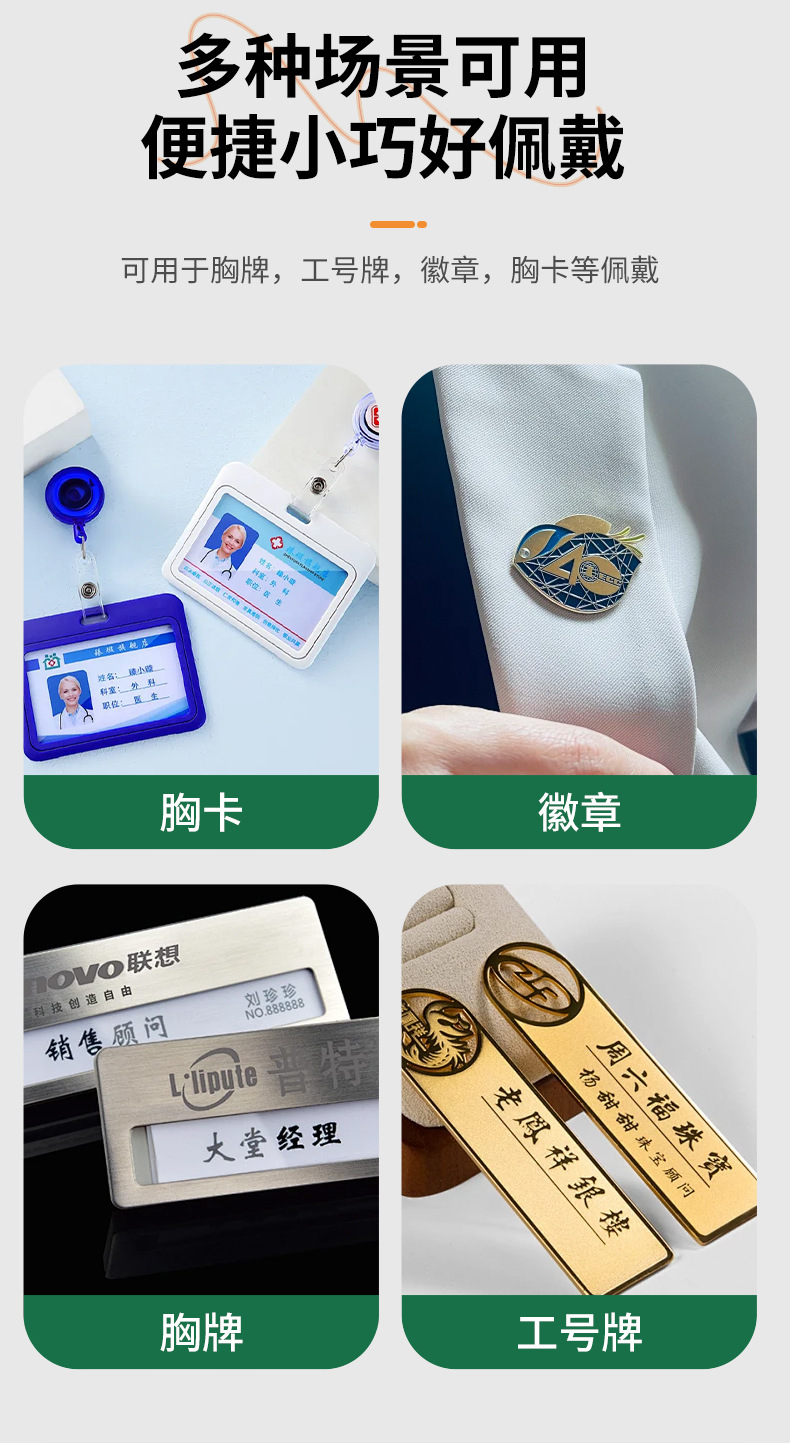 カスタマイズされた名札、カスタムメイドのピン、金属アクリル社員番号プレート、アクリルワークタグ、磁気バックル