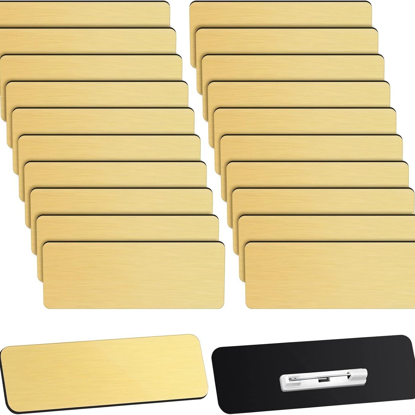76*25mm跨境现货ABS塑料空白拉丝金胸牌制作雕刻姓名别针磁铁工牌