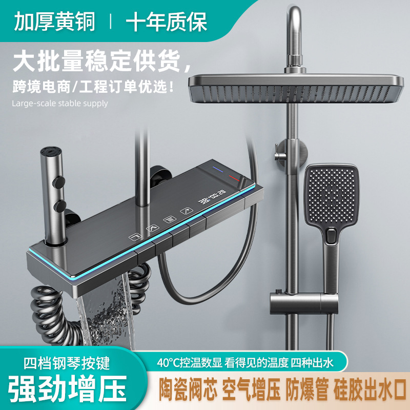 ガンアッシュピアノキーデジタルディスプレイスーパーチャージャーシャワーヘッドフルセット多機能耐摩耗性恒温シャワー