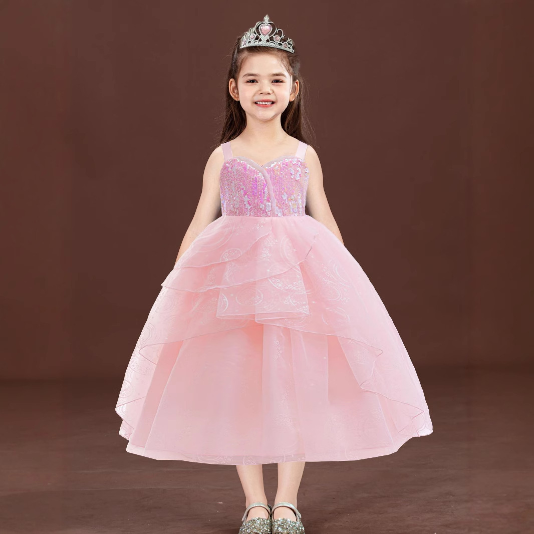 后背V另,拉链设计穿脱方便,亮片披纱是固定的2条