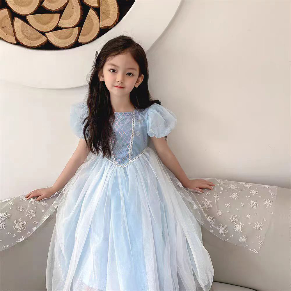 2025新款爱莎公主裙,上身采用3种不同彩钻高温烫画,裙摆定制雪花花形状+渐变色定位印花工艺