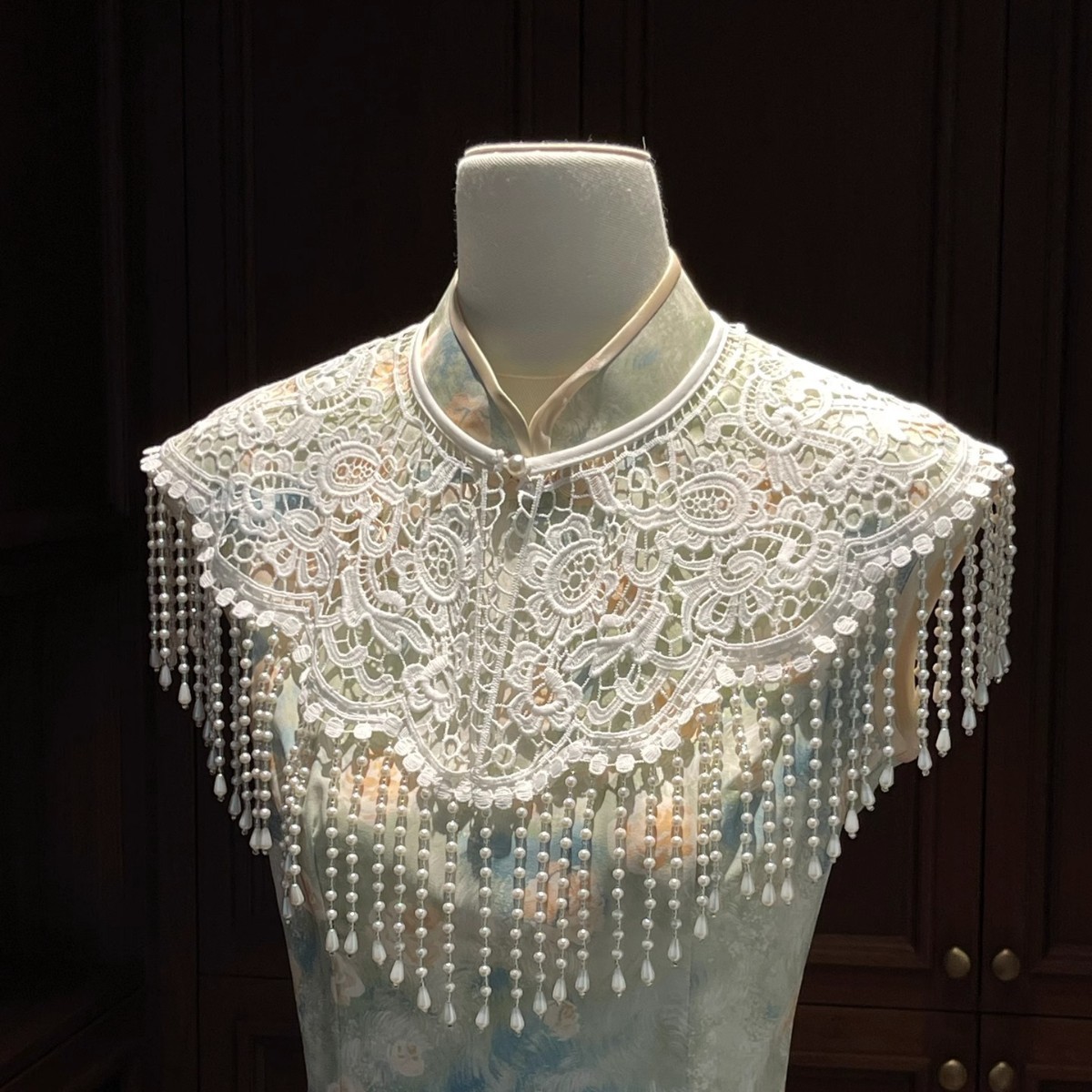 披肩外搭旗袍云肩新中式珍珠流苏2025新款百搭素雅假领子斗篷坎肩