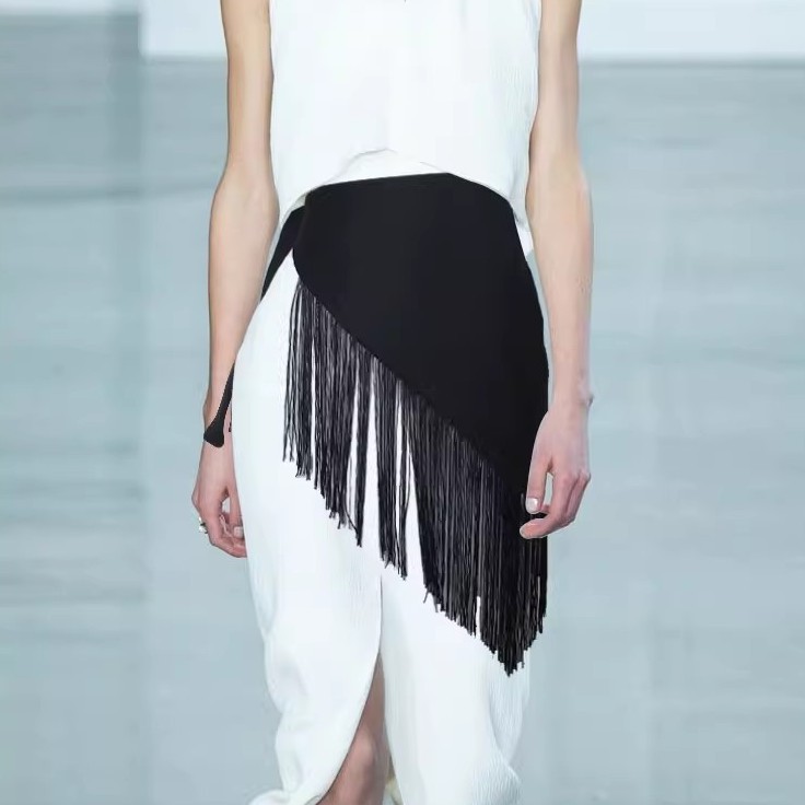 ハーフスカート ウエストベルト付きスカート レディース 韓国風 重ね着風スカート スカート付き ヒップカバー フリンジ付きウエスト装飾 ベルト飾り トレンド ブラック