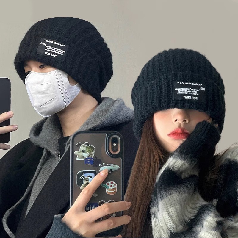 帽子男士秋冬潮毛线帽男款保暖百搭冷帽宽松大头围显脸小针织帽男