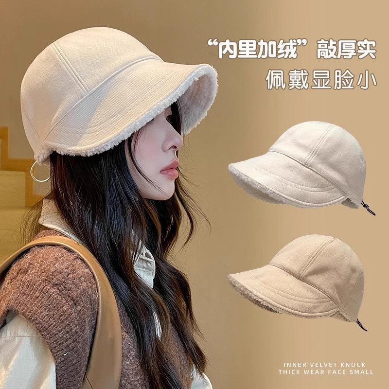 赵露丝同款帽子女秋冬渔夫帽大头围可调节保暖加厚羊羔毛鸭舌帽子