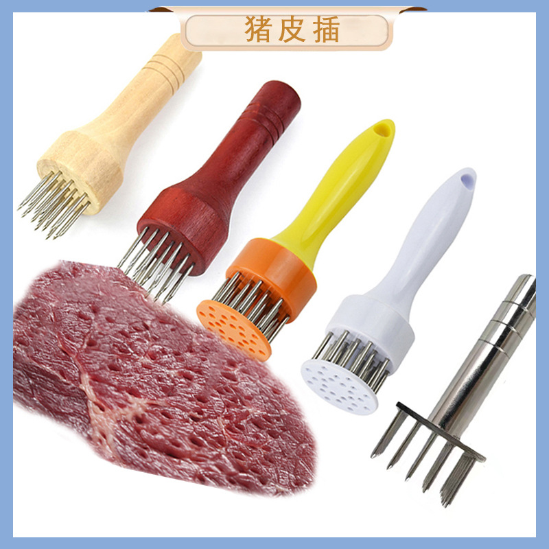 台所の松肉の針の柔らかい肉の針の豚の皮のフォークの鋼の釘の木の柄のステーキは肉のハンマーの豚肉の皮をたたいて挿します17針