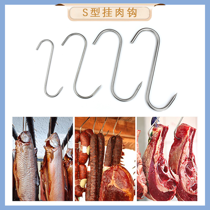 S型は肉のフックのステンレスを掛けて太くします。s型は豚肉の牛肉のフックを掛けます。