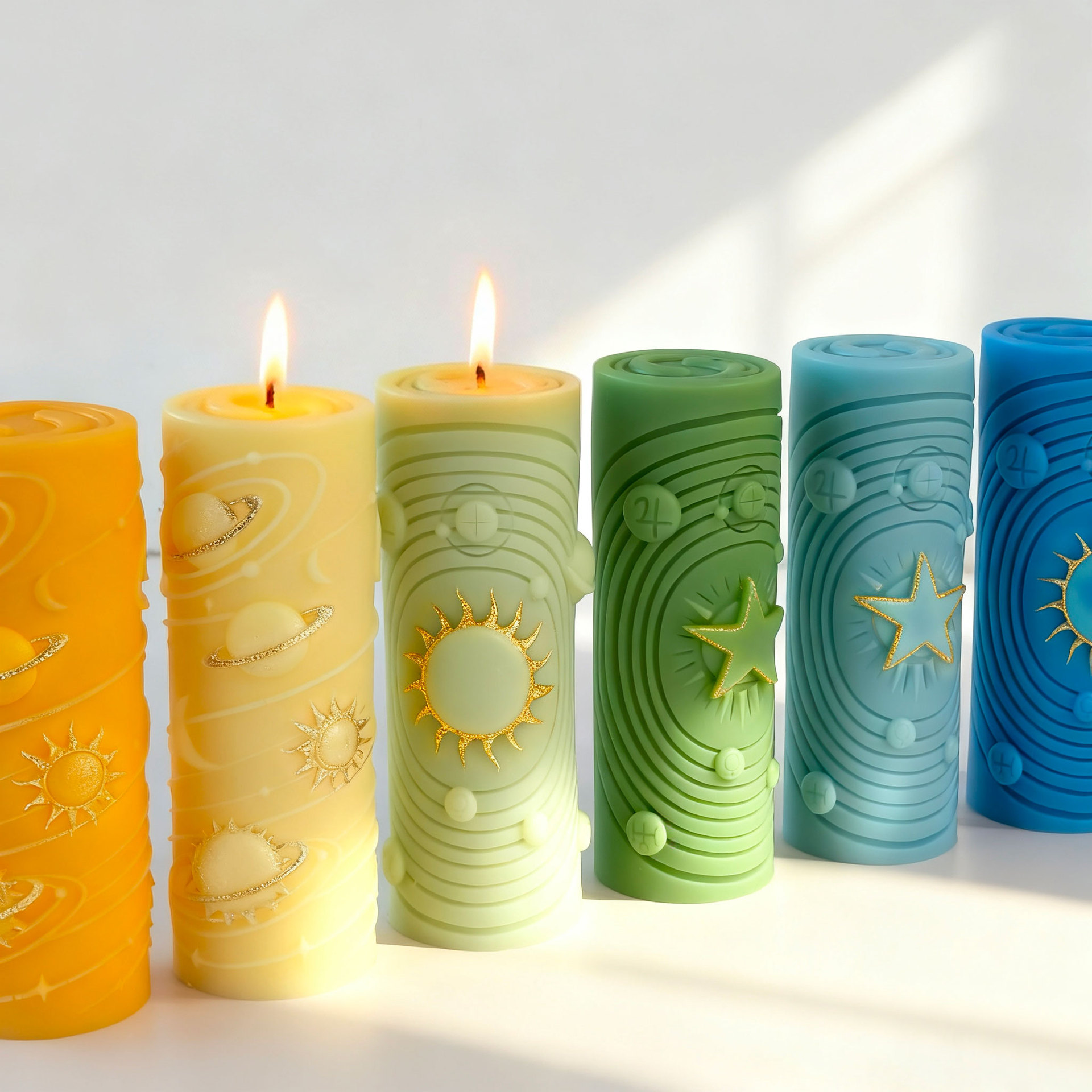 跨境花纹圆柱香薰蜡烛硅胶模具星星浮雕柱子手工蜡烛磨具
