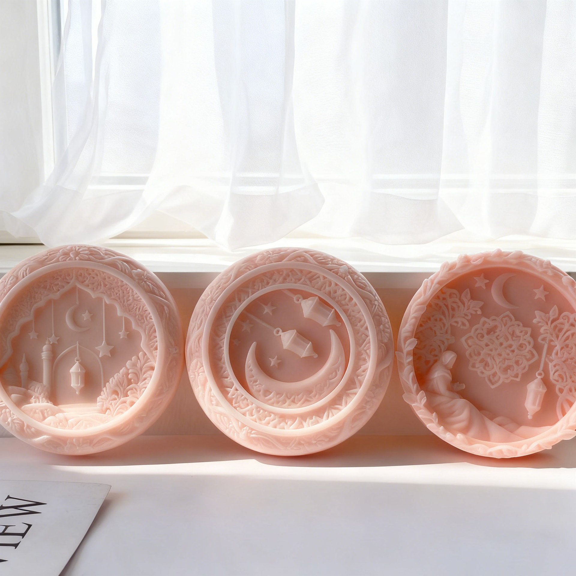 嘉匯美レリーフ模様の丸いろうそくの置物金型diyクリスマス装飾品手作り石鹸シリコン金型