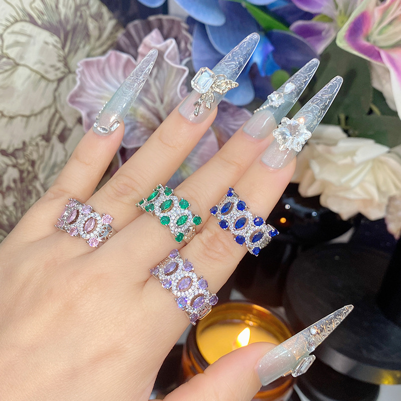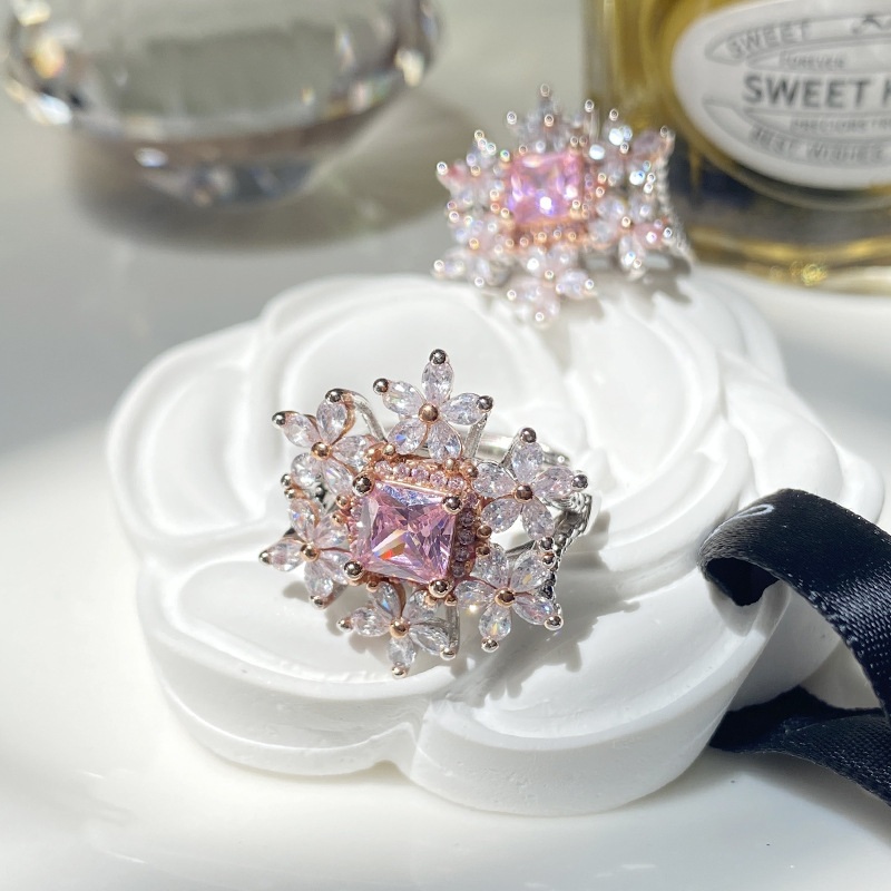 Versa彩宝薔薇粉宝指輪女性メッキ18k金微装宝青ファッション小衆高級デザイン指輪
