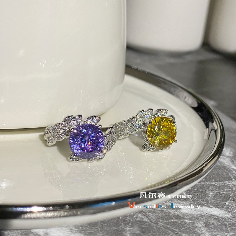 Versa大衆設計新製品幽紫擬似トパ指輪女性金メッキ含浸砕氷切黄ジルコン彩宝指輪