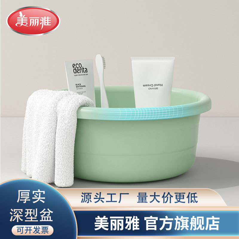 Meiya 洗面器家庭用厚く耐久性のあるプラスチック洗濯洗面器足湯学生寮厚みのある洗面器