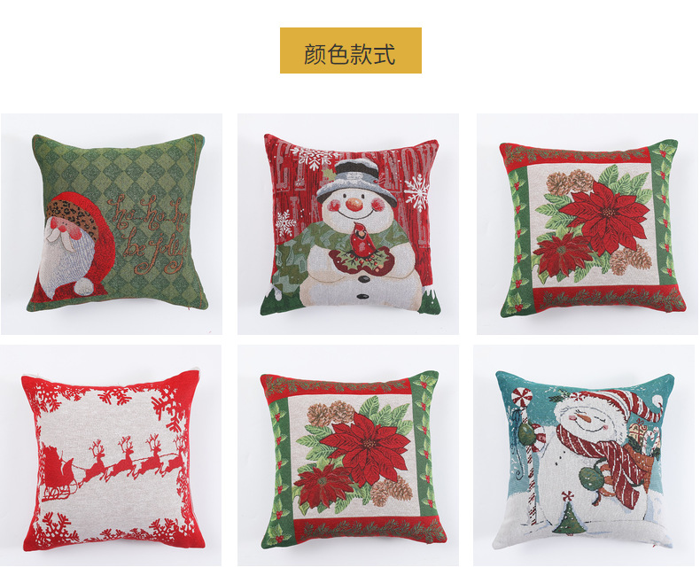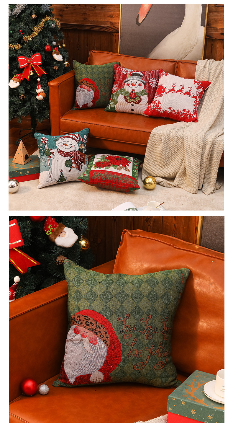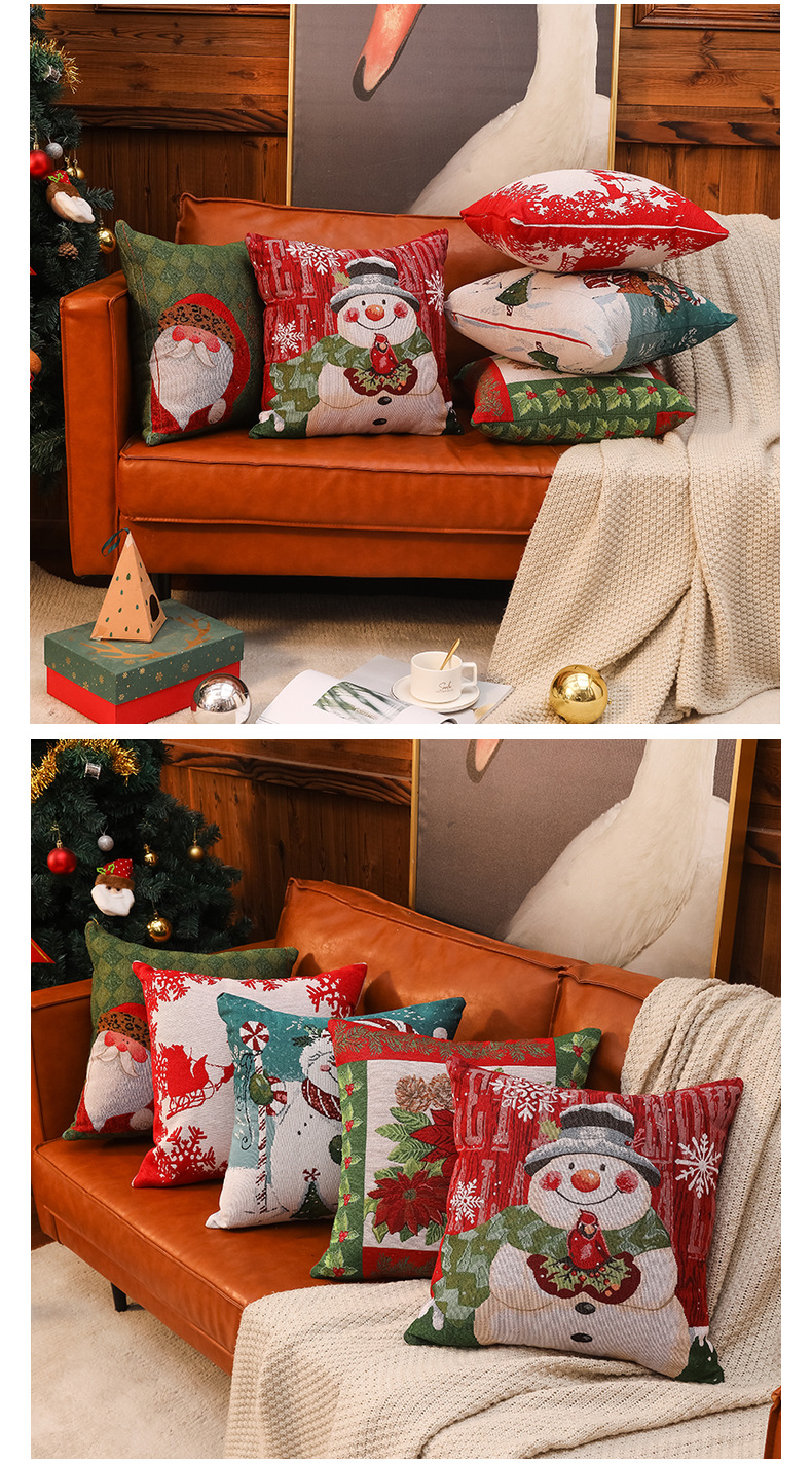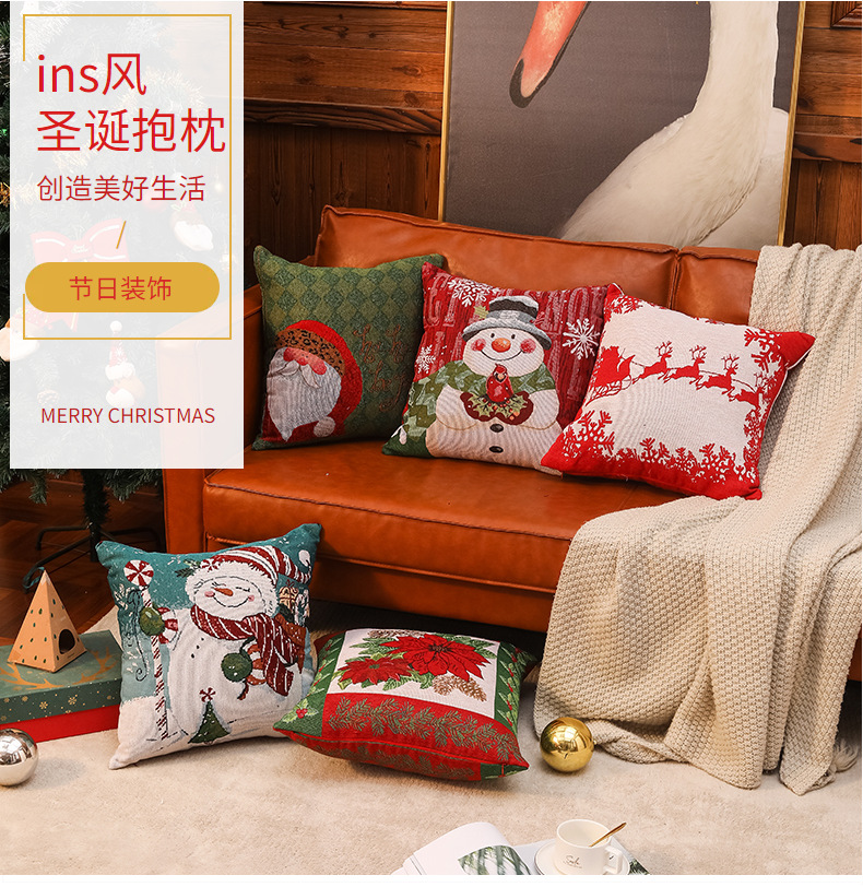 25新款色织提花圣诞拼接抱枕套客厅沙发靠垫腰枕圣诞节日装饰