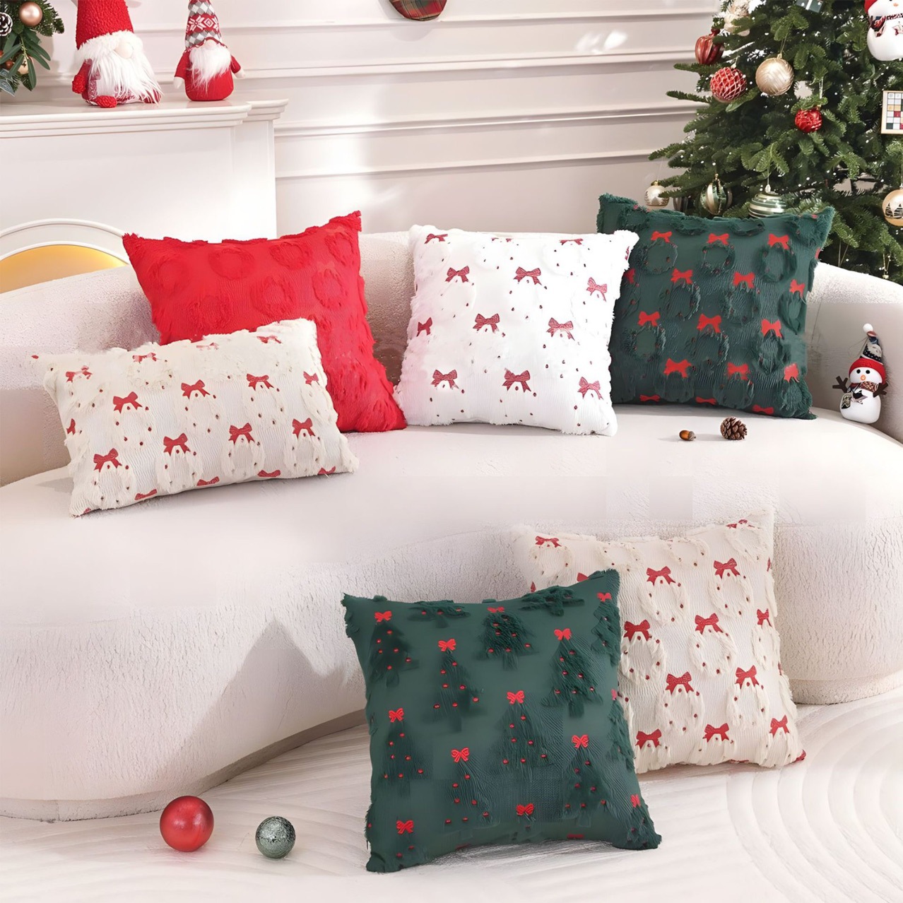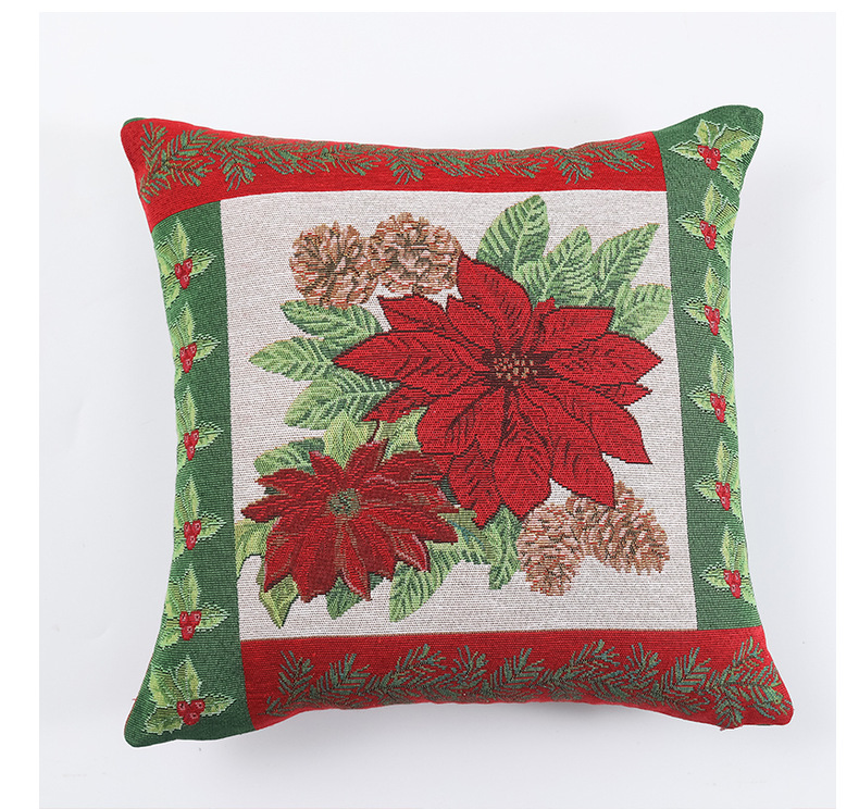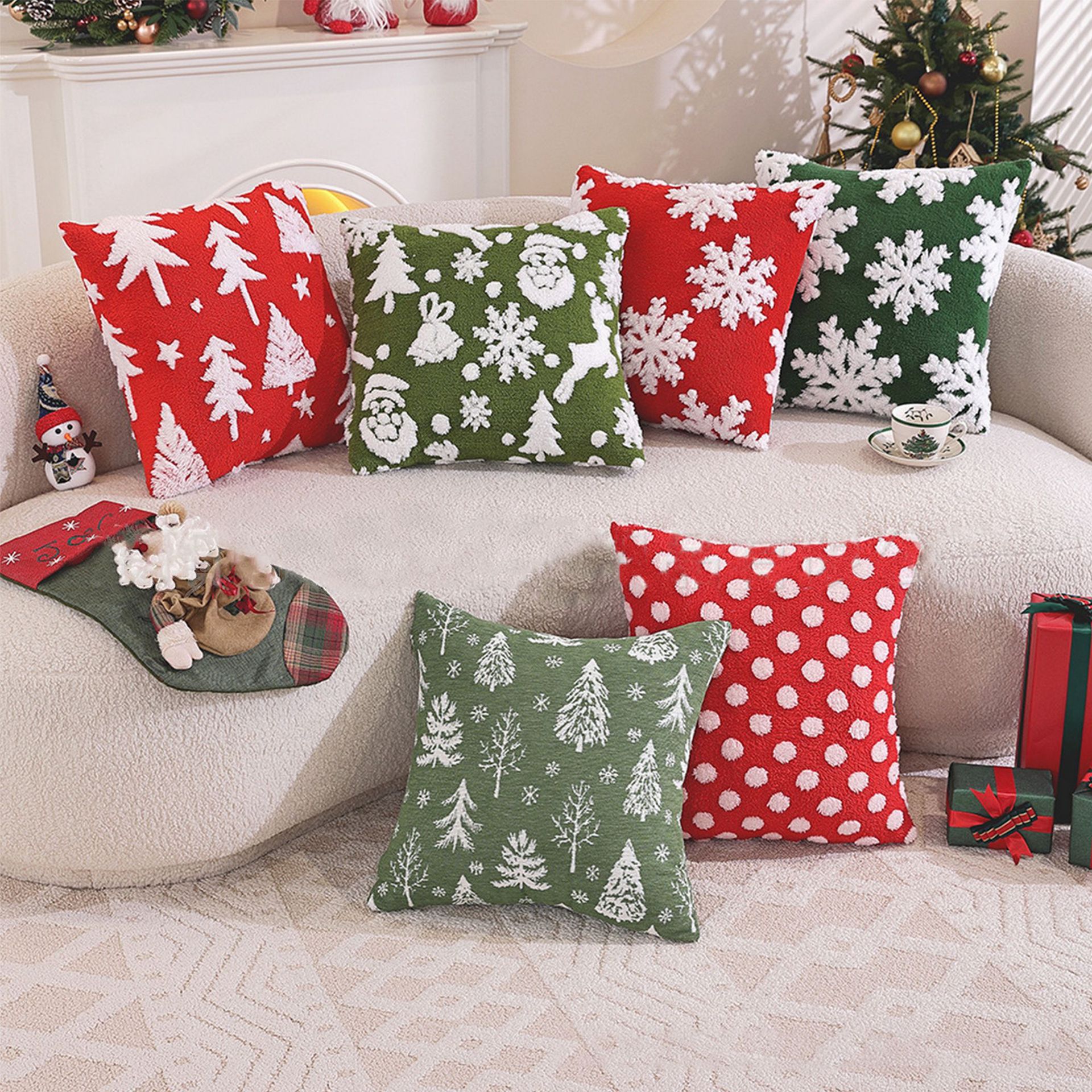 25新款色织提花圣诞拼接抱枕套客厅沙发靠垫腰枕圣诞节日装饰