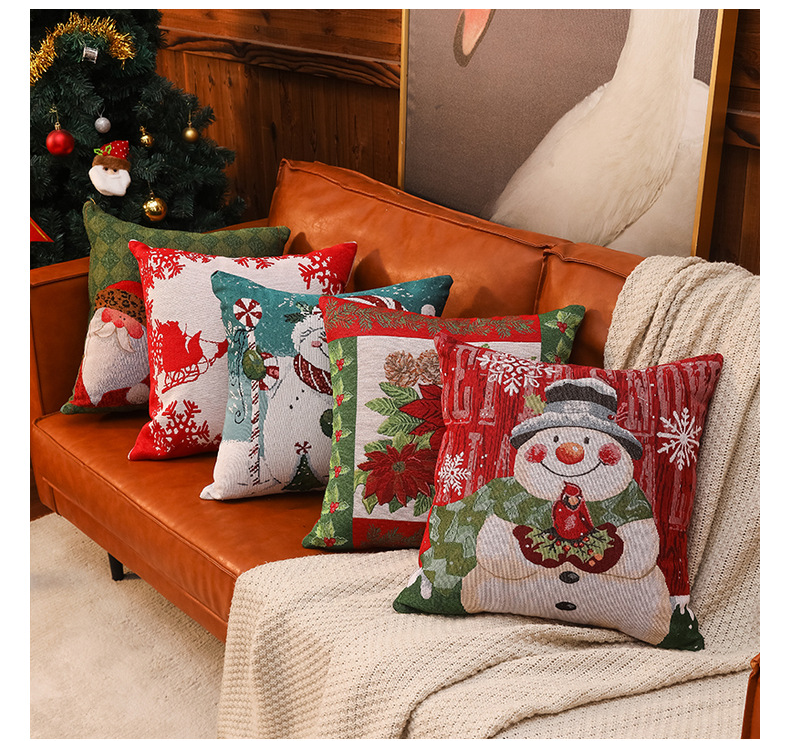 アマゾン国境を越えたスポット色織りアニメヘラジカ雪だるまクリスマス抱き枕カバー祝日装飾ソファー枕
