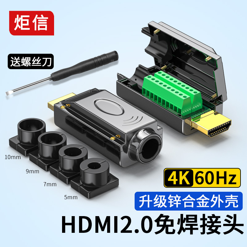 純銅HDMIオス2.0コネクタ、はんだ不要の高解像度ケーブルインターフェース、20ピン端子銅コネクタ