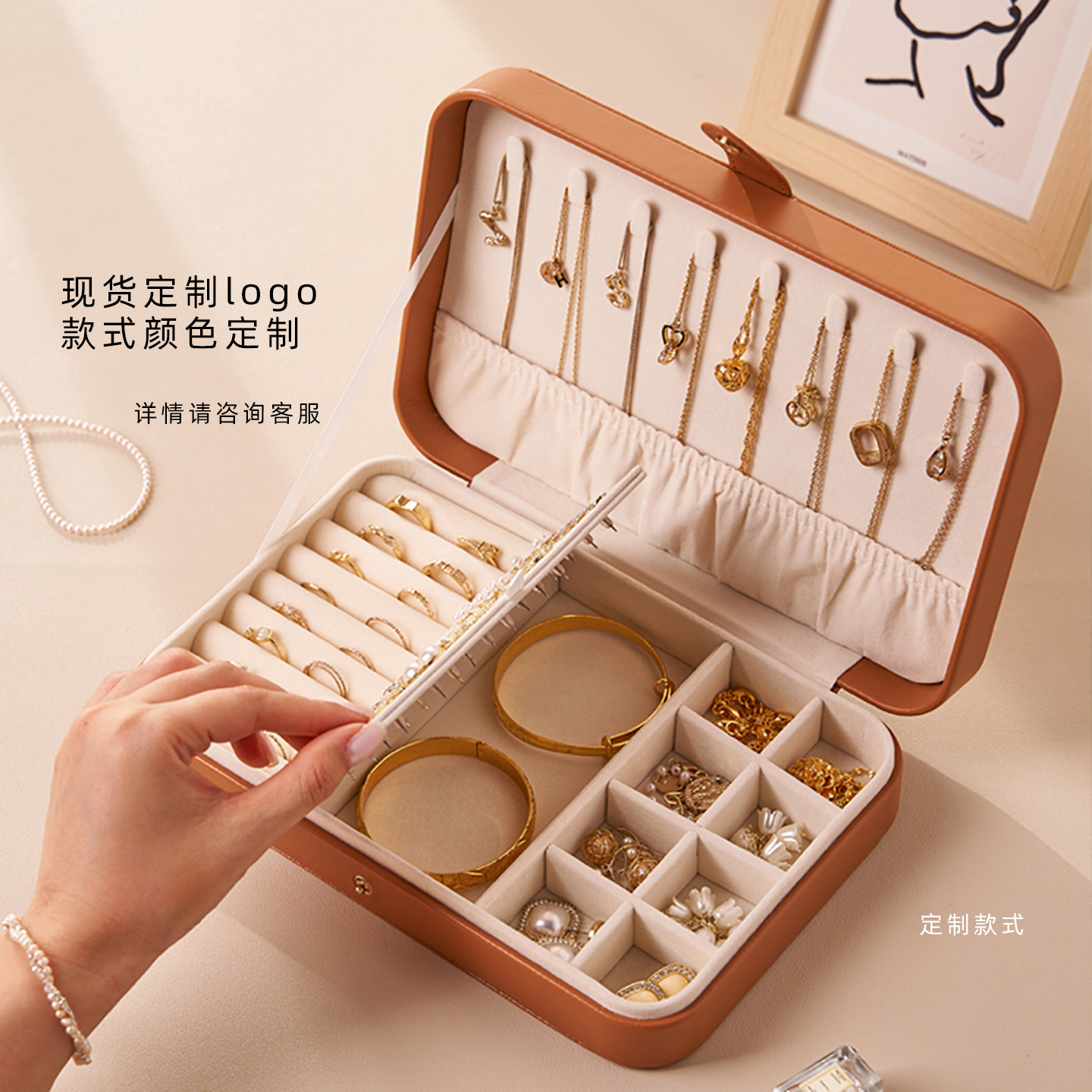 便携首饰收纳盒旅行防刮耐磨大容量首饰盒耳环戒指项抗氧化饰品盒
