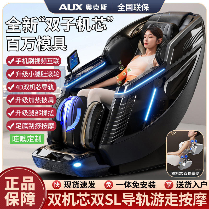 奥克斯2025新款双机芯按摩椅家用全身全自动电动多功能太空舱智能