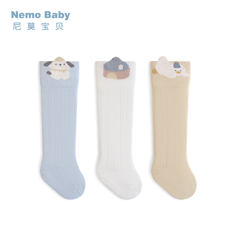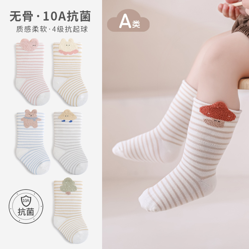 新生儿袜子秋季新款立体卡通宝宝小腿袜无骨松口精梳男女童中筒袜