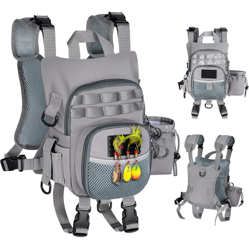 飞钓胸包背心包 – 钓鱼钓具收纳可容纳 2 个飞箱户外飞钓包