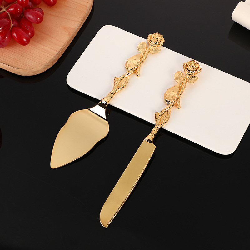 ケーキシャベル洋食食器セット金属合金結婚式の置物の美しい家庭用セットの大きなバラのシャベル