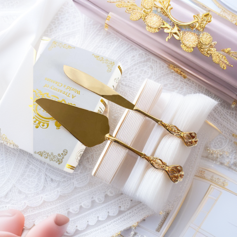 ケーキのシャベルヨーロッパ式レストランの牛シャベル家庭用金色の刃物デザートセット結婚式のアイデアシャベルの置物