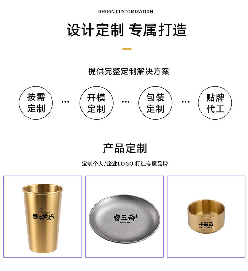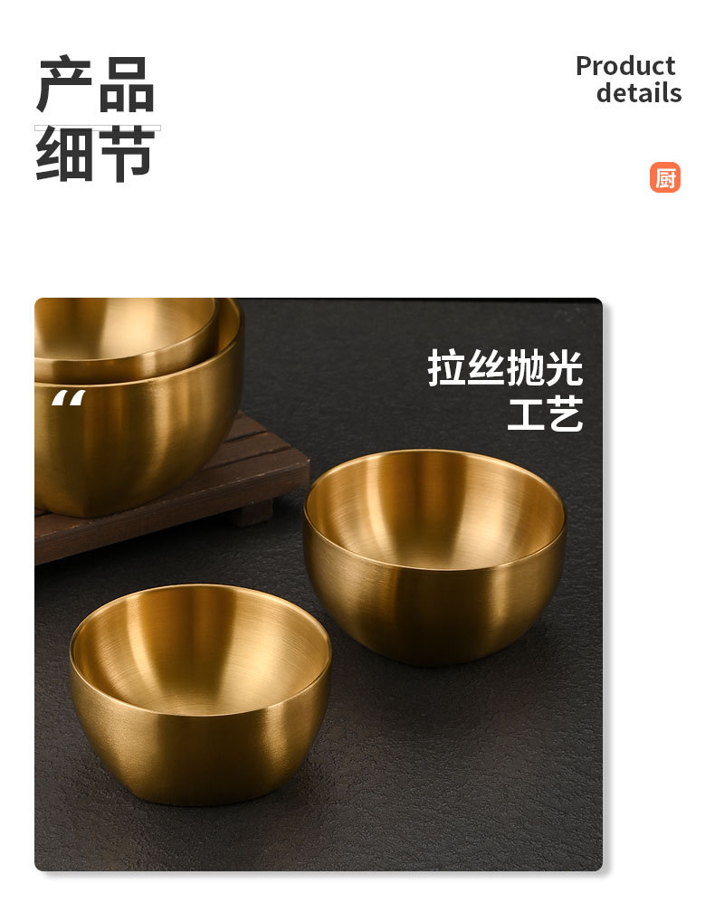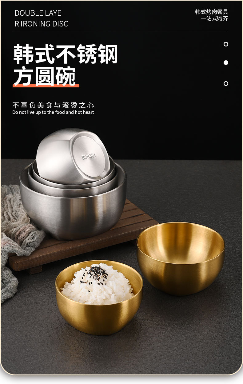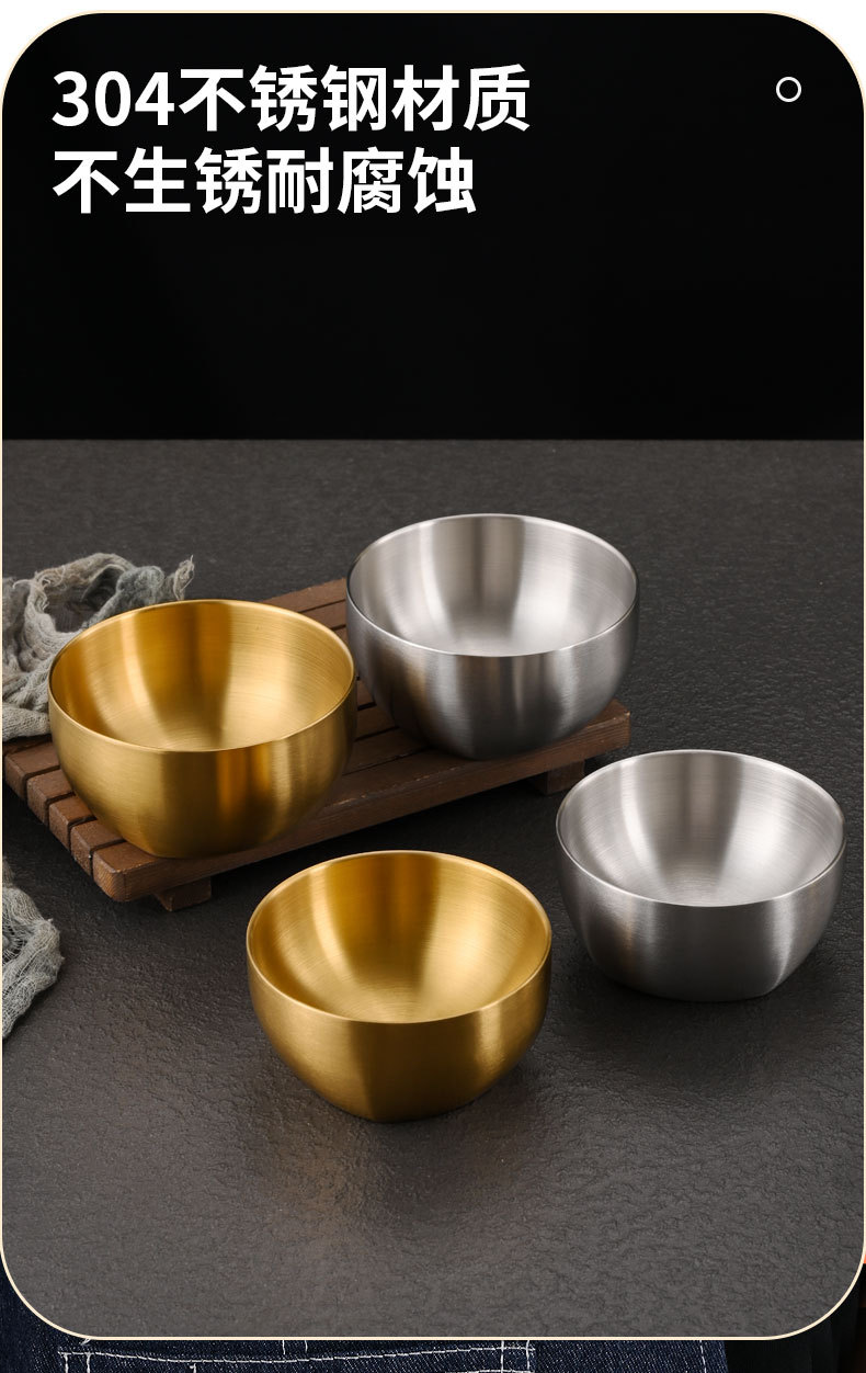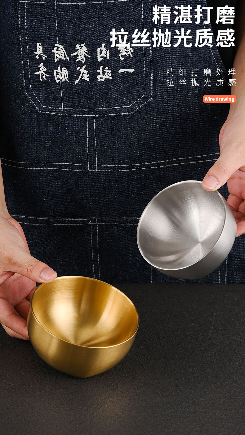 韩式304不锈钢米饭碗双层防烫汤碗儿童吃饭碗商用金色碗定制logo