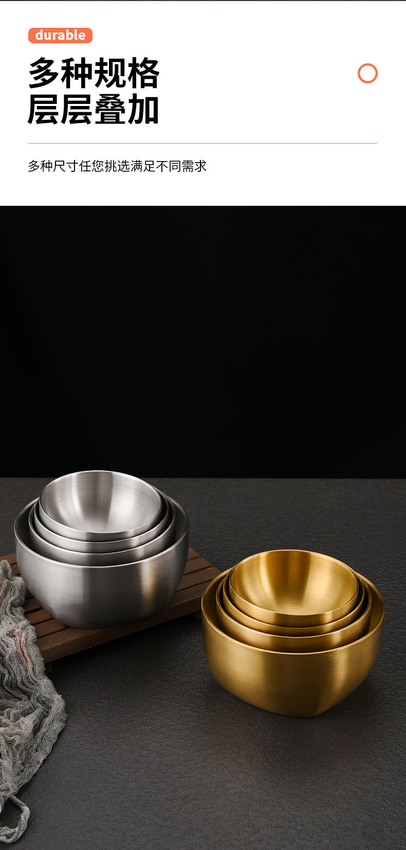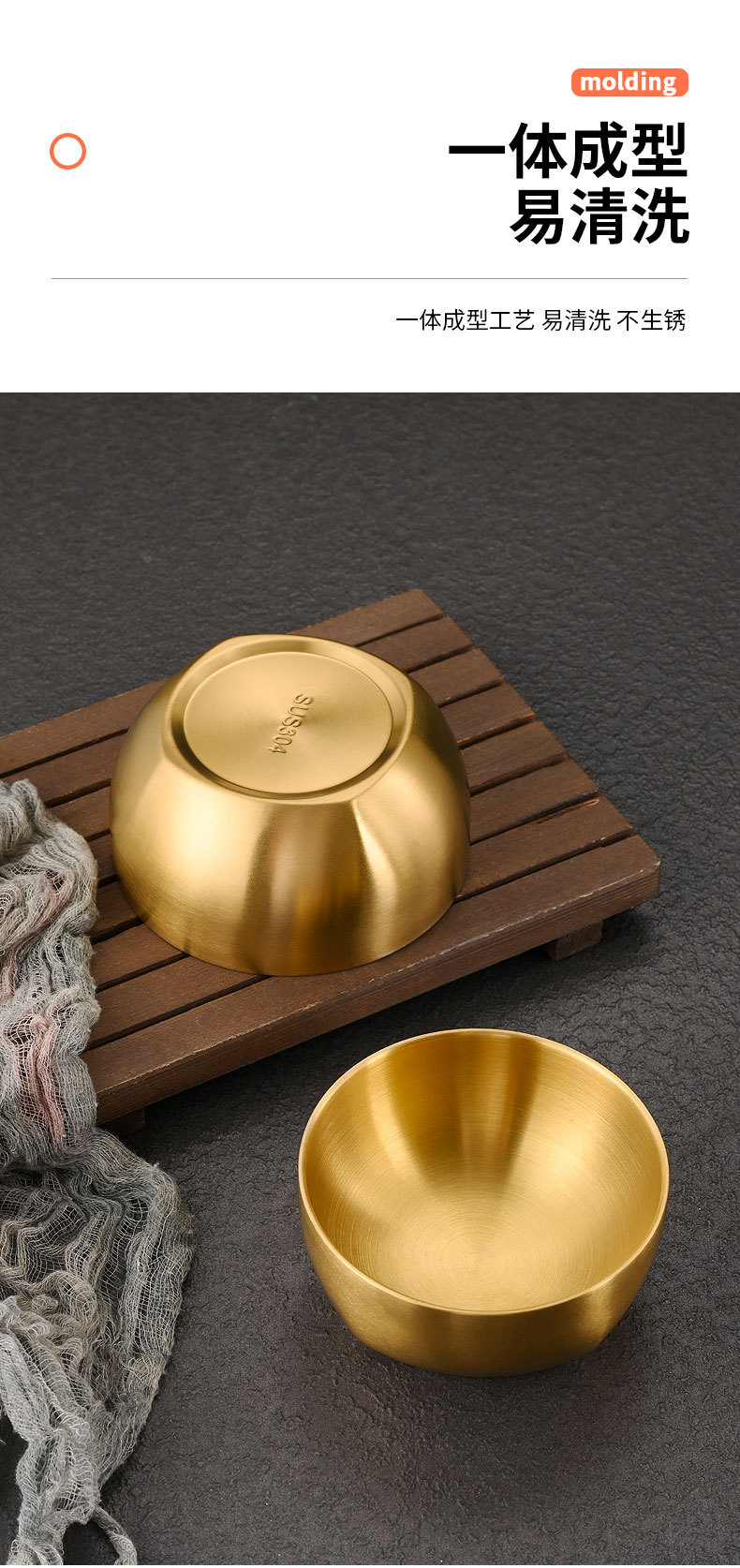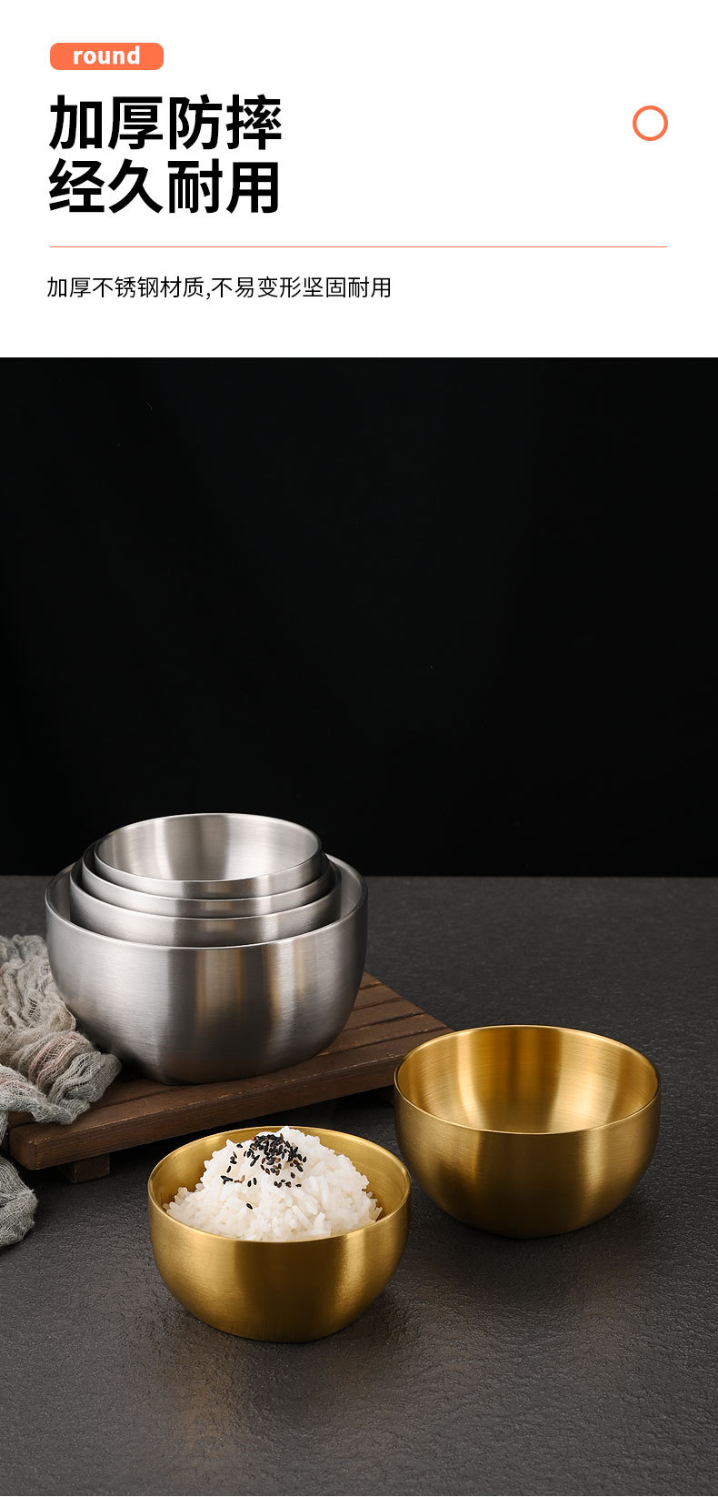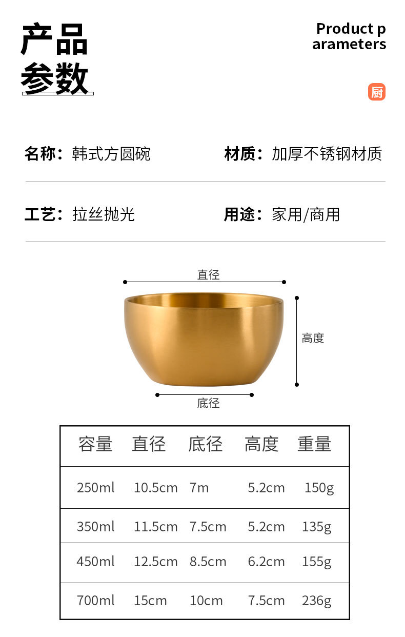韩式304不锈钢米饭碗双层防烫汤碗儿童吃饭碗商用金色碗定制logo