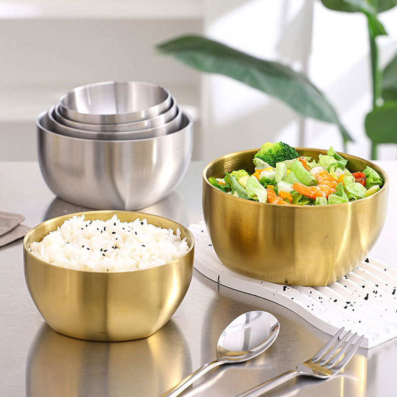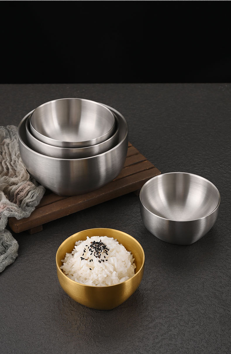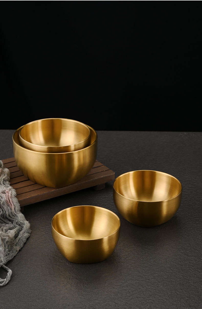 工場直売韓国式304ステンレスご飯碗金色家庭用二重熱防止スープ碗子供用食事碗