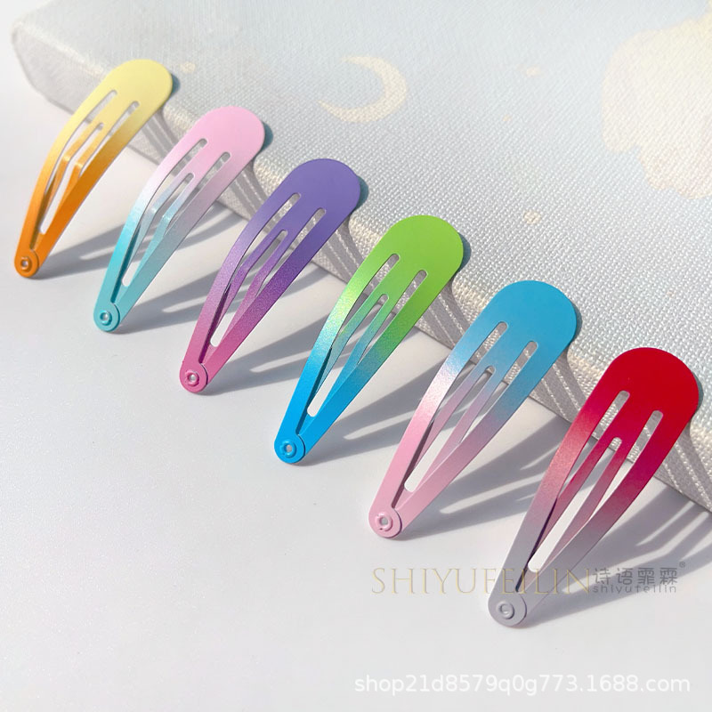 韓国のヘアピンins風グラデーション滴油レーザーキラキラヘアピン2色子供モランディ系サイドクリップ髪飾り