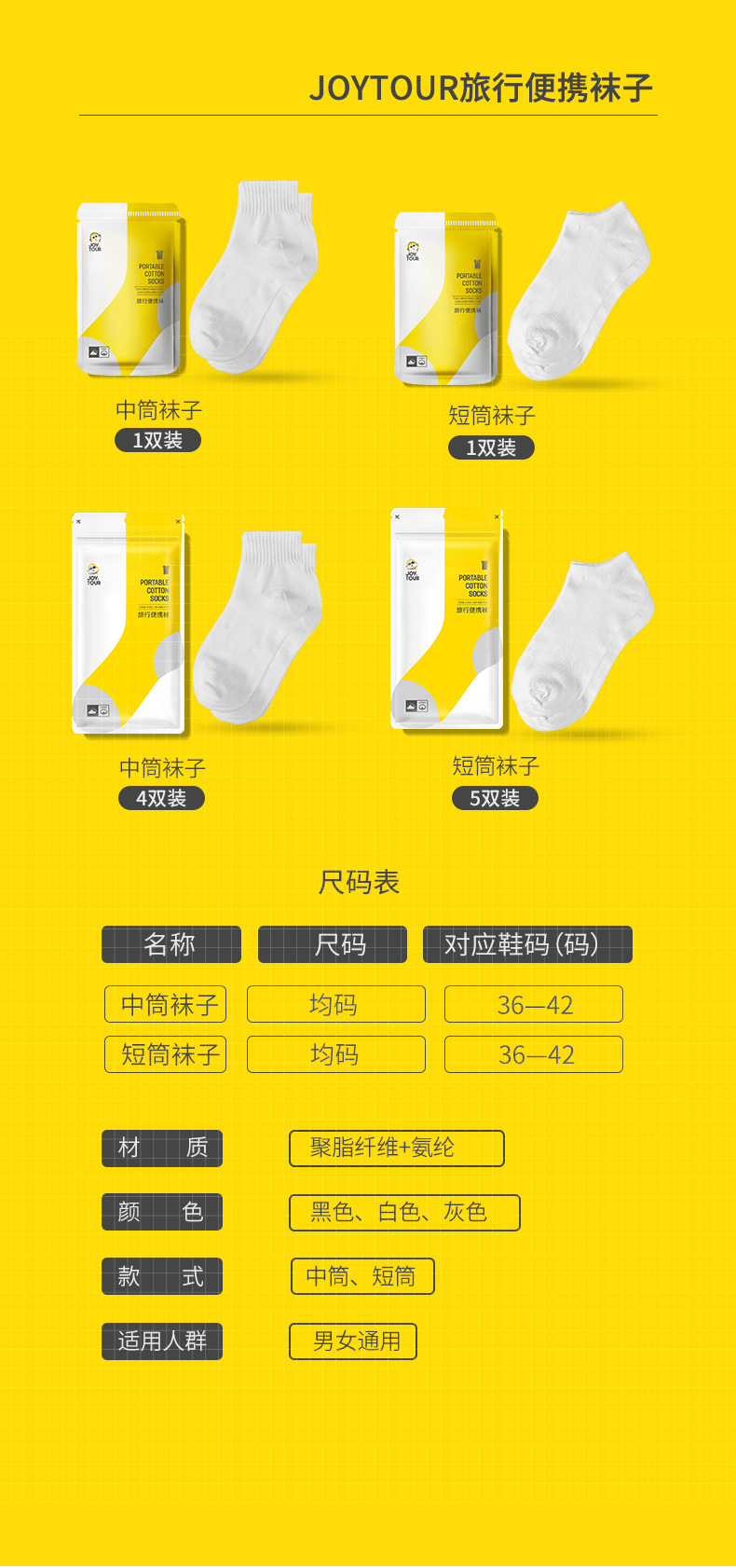 JoyTour 使い捨て靴下、洗濯不要の男性と女性の薄いアウトドア旅行靴下、吸汗性靴下、ミッドチューブソックス卸売